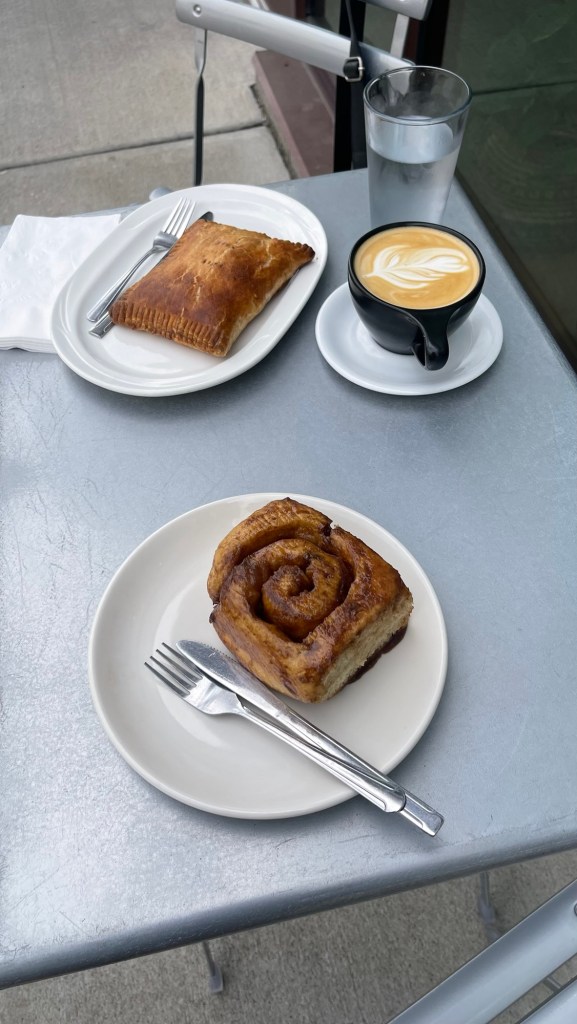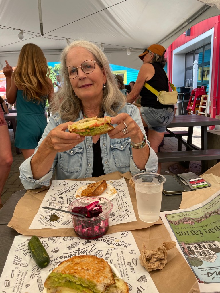 Parking lot peeing for Bailey before hitting the road for Michigan. The hallway here smelled like a mix of pot and hazelnut coffee. We highly recommend – NOTCoffee and a PeeAmazing bakery in Tremont Ohio. Part of ClevelandAnn Arbor. My old stomping grounds. At lunch at Zingermanns deli. Lucky to find an art fair across the street.MY OLD HOUSE!